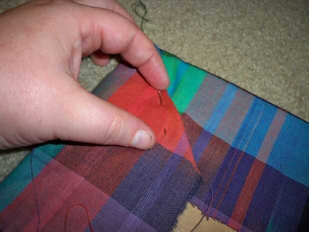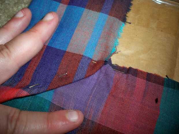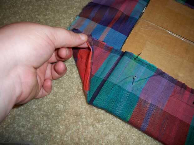 8) perno esas esquinas de la tela a lo largo del pliegue. Todo lo que necesita para mantener a la tela de aflojamiento del PIN.