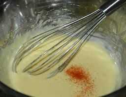 (Mientras la salsa se Asegúrese de que los huevos escalfados no cocinero, si terminan antes salsa Retire y coloque en el muffin en el horno). Mientras que son escalfar huevos comienzan la salsa holandesa. Tomar las tres yemas y un chorrito del lugar de la cuña de limón en un recipiente que se encuentra en la cima de la pequeña olla de hervir agua, no toque el agua. Batir enérgicamente durante un par de minutos y luego comenzar a batir con la mantequilla derretida poco a poco. Agregar sal y pimienta de Cayena a gusto. Bata hasta que la salsa ha espesado y se duplicó en tamaño... tapa y coloque en un lugar cálido hasta su uso.