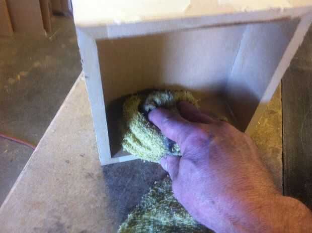 Una vez había cortada la tapa y limpiar el cieno, fijar la caja a un lado hasta que el pegamento seque. Esto toma alrededor de 1 hora con el MDF y ya con maderas duras. Durante la noche es el mejor pero lo hacen más pronto si la articulación es desordenada y quiere limpiar bajo la cinta con un trapo húmedo. Si trabajaste limpio, usted puede fácilmente la arena de cualquier mancha de pegamento después de ajustan las articulaciones.