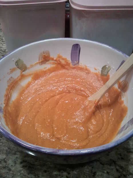 Paso 3: Añada la mezcla del paso 2 en la mezcla de calabaza y asegúrese de mezclar bien. Añadir trocitos de chocolate (opcionales).
