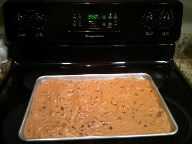 Paso 4: Verter la mezcla en no engrasada de 15 x 10 x 1 bandeja para hornear. Hornee a 350 durante 25 a 30 minutos.