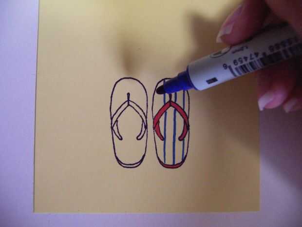 Añadir color, si lo desea, con rotuladores o lápices de colores. (En este ejemplo también he añadido la frase "relax" debajo de la imagen con un lápiz negro.)
