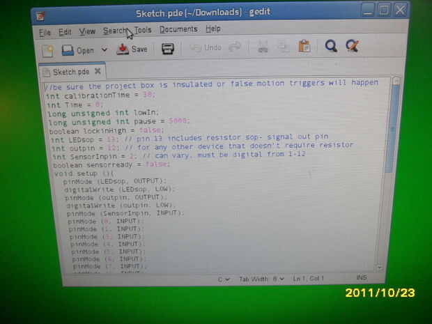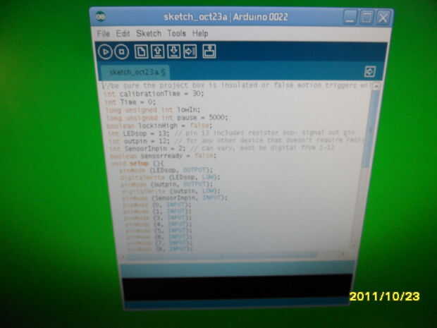 Esto hará que el Arduino Lea la salida del sensor y activan un LED durante siete segundos y apagar. Modificar para satisfacer sus necesidades. Tarda 30 segundos para calibrar el sensor.