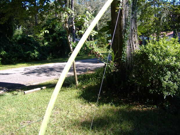 Todo lo que necesita hacer para un arco de la muesca es cortar una muesca en forma de "V" en el extremo del eje. Utilicé 50 lb test monofilamento para la cuerda del arco, no porque es un material realmente excelente porque estaba disponible para mí en el momento. No preferencia probablemente es un nudo de pescadores (sólo porque es muy simple y bloqueo). Extremo de un lazo y del lazo alrededor de una de las muescas. A continuación, puede ATA otro lazo (nudo del mismo) y coloca en la hendidura del otro.