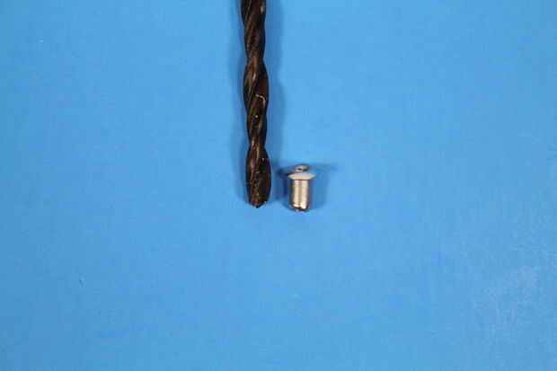 Encontrar una broca ligeramente más grande que el tamaño final de remaches. Me gustaria perforar un agujero de prueba en un trozo de madera de desecho y probarlo para asegurarse de que.