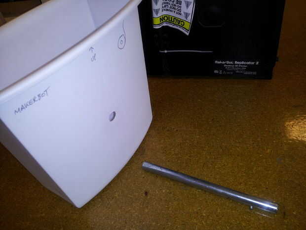 Cortar el palo de escoba o todo lo que tubo lo utilizan para caber la anchura de la cubeta más un poco más para que se peguen hacia fuera de cada lado.