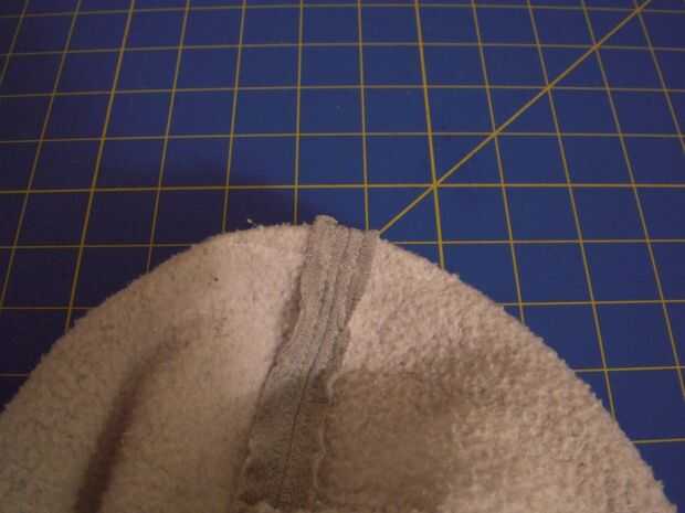 -Gire a la derecha hacia fuera y tire de la costura a través de coser el segmento recta (lados mal juntos)