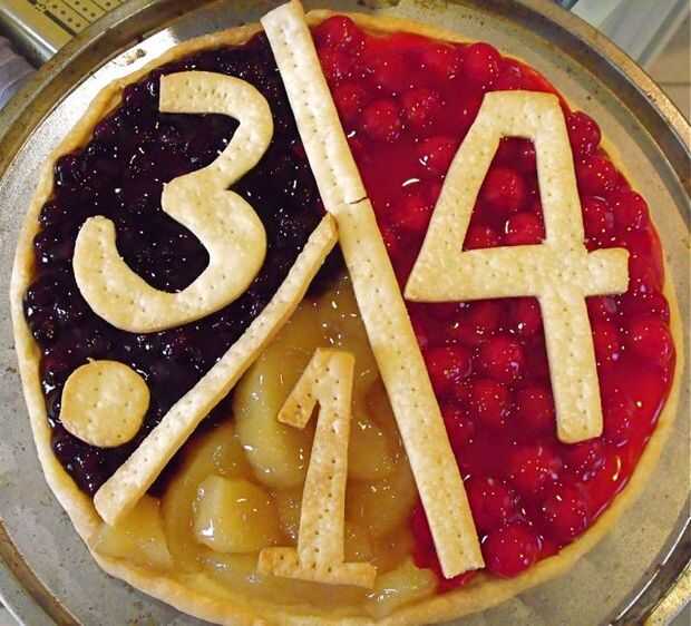 Organización de las secciones de la manera que se muestra en la imagen pone en el orden de los 3 primeros dígitos de Pi - 3, 1, 4. El punto decimal se incluye para hacer más evidente la conexión a Pi. Puede dejar si desea un postre de gráfico circular.