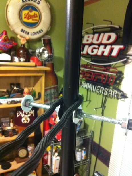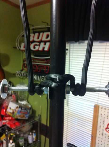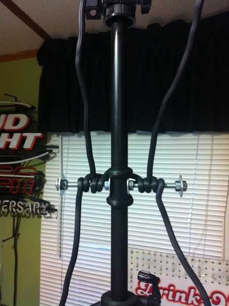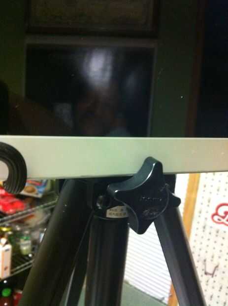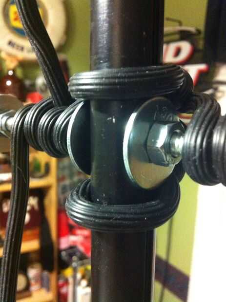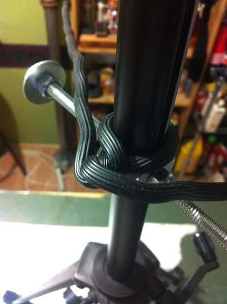 Nota: usted quiere las primeras porciones retorcidas de los lazos del engranaje que por el contrario lado te estás iPad será el. La parte del primer doblez de los lazos del engranaje será suficiente para mantener su iPad de frotamiento contra las arandelas de metal. La perilla de ajuste para el tubo de extensión de trípode añade un pequeño extra protección para tu iPad.