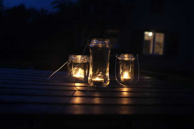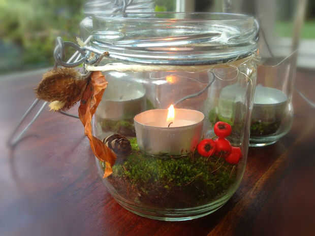 He visto lindos faroles en una tienda que eran super caras, así que decidí ser inspirado por la idea de utilizar envases de vidrio con un alambre para llevar la linterna.