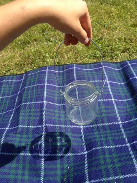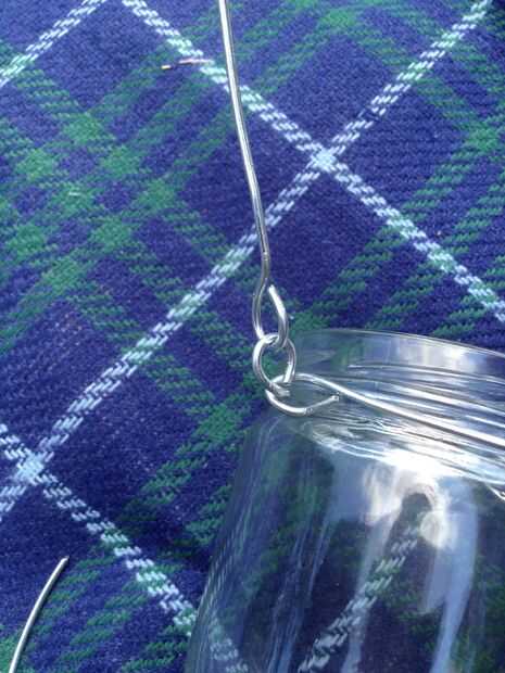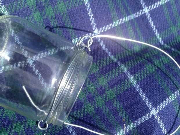 El último paso es colocar una manija para su linterna. Esto se hace insertando un extremo de un pedazo largo de alambre en uno de los anillos en el vaso. Entonces, puede también doblar un anillo en que los cables (ver imagen 2). Hacer lo mismo con el otro lado del manija-alambre. HECHO! sí.