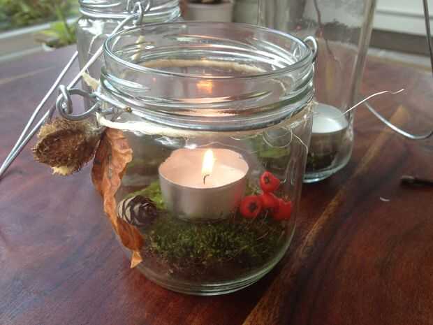 Primero que las linternas vacías y había utilizado durante las noches de verano en nuestro jardín. Da una luz muy agradable y cálida para este acogedor sin fin! Puesto que la caída está llegando ahora, decidí decorar mi linternas según la temporada. Para este otoño, me recogió algunos material del bosque y ponerlo en las linternas. ¡Me encanta!