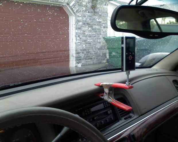 Hay algunas desventajas a este. En primer lugar, no funcionará para todos los coches. Pasé por cuatro coches antes de que encontré que podía clip de esto sobre. En la foto es un Marqués magnífico del Mercury 2001. En segundo lugar, no tiene amortiguador, así obtendrá una cámara bastante inestable. Con gratitud el Marqués magnífico del mercurio paseos bastante suave. En tercer lugar, no puede ser capaz de manejar una cámara pesada.