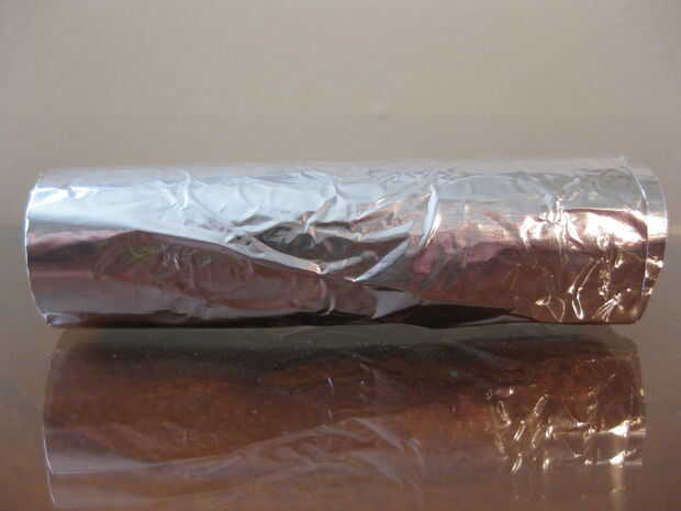 Cortar un trozo rectangular de aluminio mide unos 7cm por 12 cm. rollo de papel alrededor de su dedo, un lápiz grueso, marcador etc. dependiendo del tamaño su mármol. Ahora debe tener un pedazo de cilindro-como de papel de aluminio.