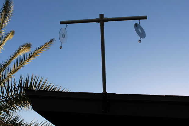 Una conexión cruzada fue utilizada para permitir que más sustos. Puede agregar más árboles y diferentes tipos de reflectores o carillones a otros disuadir a las aves.