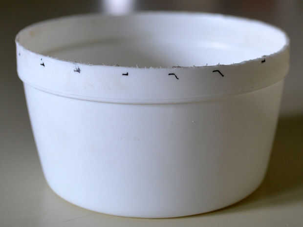 Primero mido el diámetro interior de la ranura con un Vernier. Entonces usando una pluma que me marca ese diámetro en la parte inferior del envase, haciendo totalmente seguro de que yo estaba centrado. Cuando termine haciendo un montón de marcas de todo doble verificar el tamaño del diámetro y el centro de la misma. Luego cortar y presentar apagado hasta que tenga un círculo incluso del diámetro de la que quería.