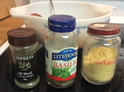 -aproximadamente 2 cucharaditas de mostaza en polvo (o unas arroja a chorros de mostaza preparada).