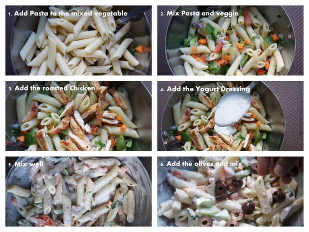 2) luego agregar la pasta penne cocida (después de correr bajo agua fría) a la mezcla de vegetal.