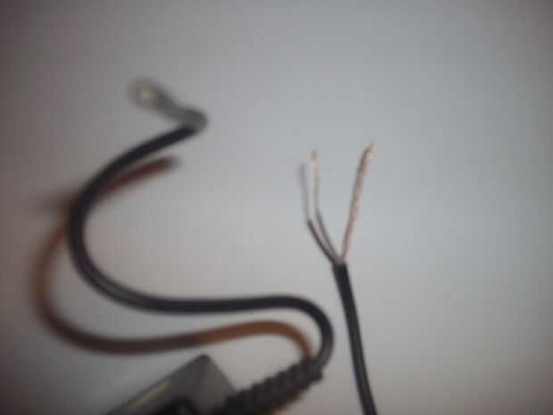 1. Corte el cable a la longitud deseada. Asegúrese de dejar suficiente longitud de cable por lo que en realidad la podría soldadura al cable original del ordenador portátil. En cuanto a mí, he dejado un poco alambre del enchufe (uno que va a la salida) lado porque podría necesito el adaptador y vuelva a utilizarlo en el futuro.