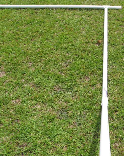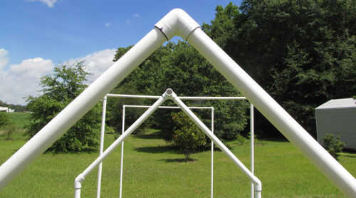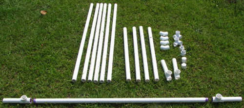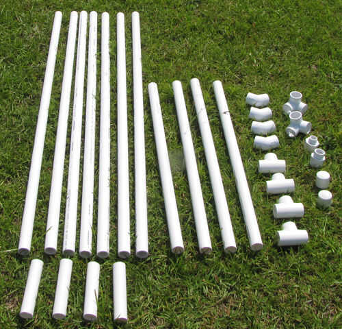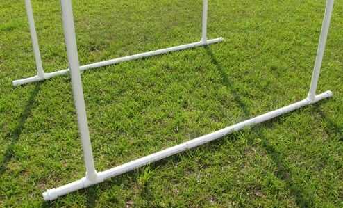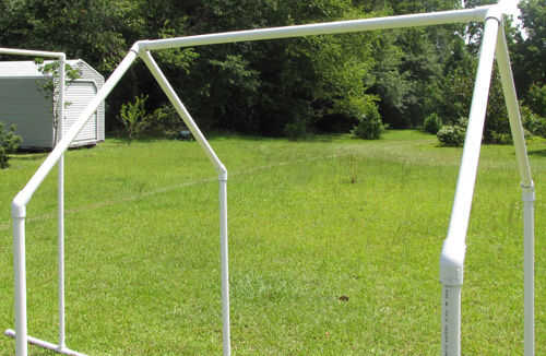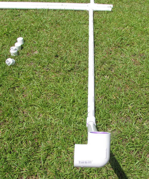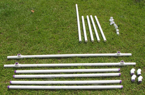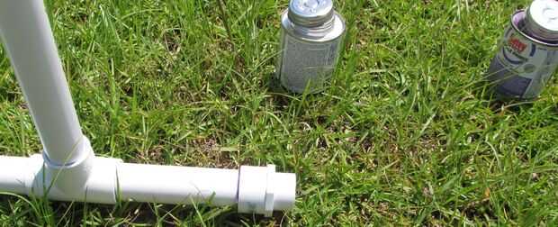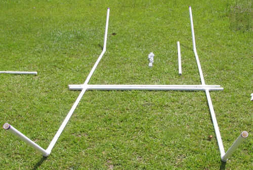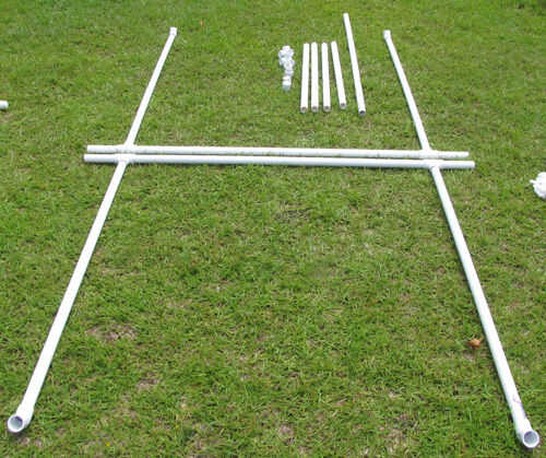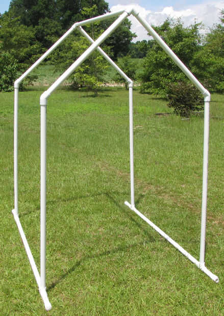 Conectar ambos lados del preparado 1 x 48"(4 ft) pedazo de 1-en tubo de PVC Schedule 40, en las tomas abiertas en 2 1-en el Dia 90 grados PVC Sch 40 codos de salida lateral. Esto le dará una casa/sala de marco.