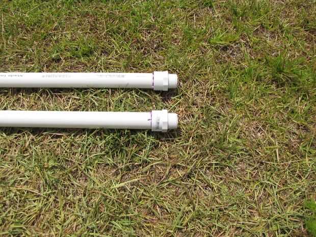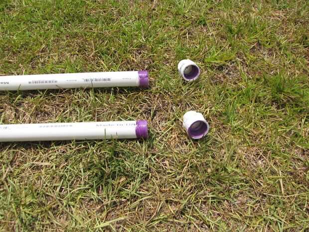 2. Aplique imprimante, luego a los extremos expuestos en ambos conjuntos de pie 1" programar 40 tubería de PVC y en el interior del 1 x de cemento 1 - en Dia x 3/4 diámetro del PVC Sch 40 adaptador (mujer), 1 x en 1 Dia x 3/4 diámetro del PVC Sch 40 adaptador (hombre) y 2 x 1 de diámetro PVC Sch 40 Caps.