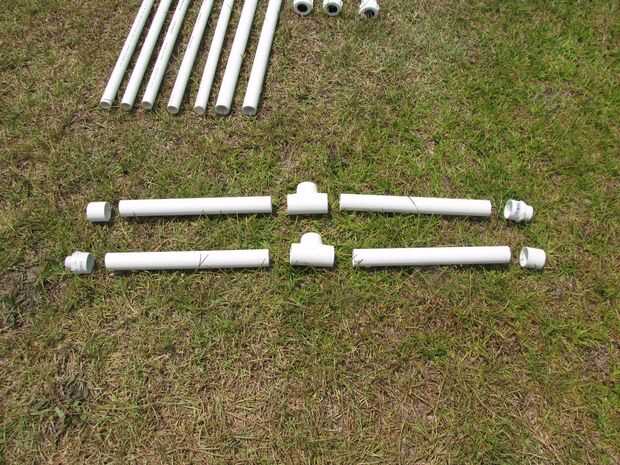 Conecte cada uno de los preparado 12"(1 pie) pedazos de tubo de PVC Schedule 40 de 1" a la izquierda y derecha de los 2 preparado 1-en el Dia del PVC Sch 40 Tees. Asegúrese de hacer un ajuste apretado.