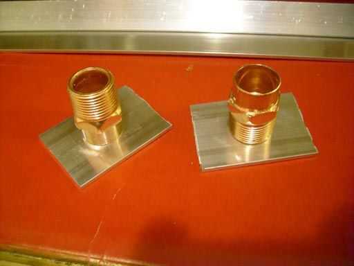 Aquí corté dos piezas de metal bolsa de aluminio (2' x 3' x 1/8') y algunas pipas de adaptador de cobre 3/4'.