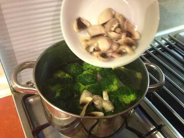 mientras tanto, el cuarto corte las setas. Agregar cuando el brócoli ha suavizado un poco.