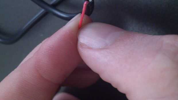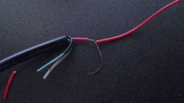 Con el dedo pulgar y otro dedo de elección cCordero el diluyente cables entre usted miniatura y el de elección (cuadro 2) y tire el plástico apagado por lo que está mostrando el cobre. Para ello en cuatro de los cables.