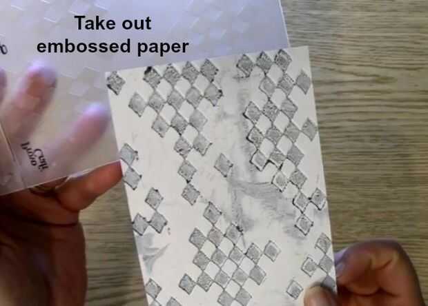 Sacar el papel de la carpeta de grabación en relieve para revelar el relieve tipografía buscando el resultado.