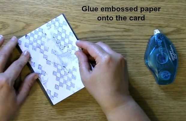 Pegue su relieve "tipografía buscando papel" en la tarjeta.