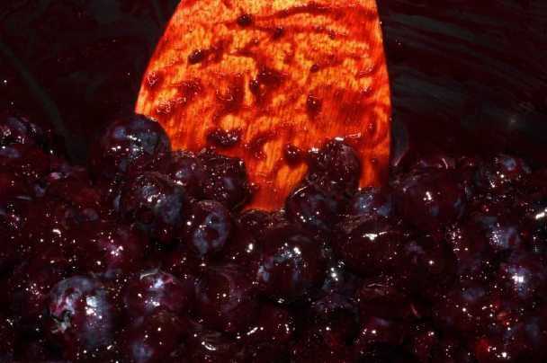 Retirar del fuego y revuelva suavemente en las otros 2 pintas de arándanos frescos (o congelados).