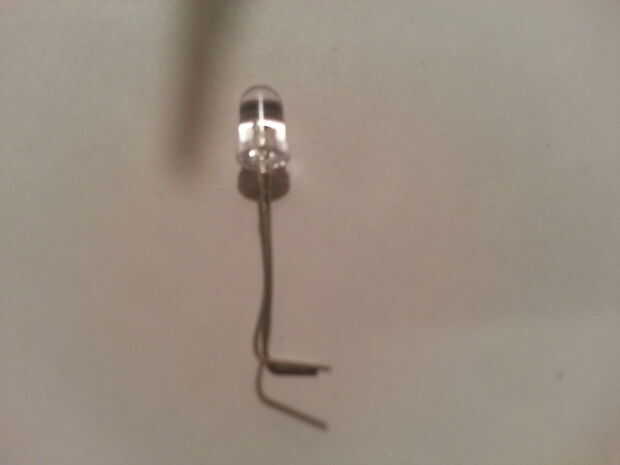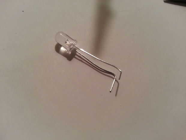 The led! El famoso diodo que consiguió su popularidad porque puede producir la luz! Los cables de tu led necesitan ser dobladas en la parte inferior de 90 grados. De esta manera que el led está apuntando hacia la parte inferior de la jarra una vez terminado.