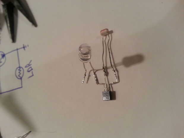 Alicate para doblar las puntas (como se muestra en las imágenes) y luego tanto la lata. Luego soldar el cable negativo al colector del NPN. (ver fotos para una mejor comprensión.