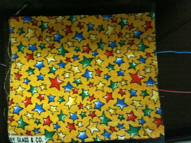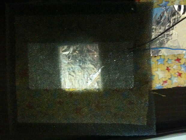 Coloque la pieza de espuma en entre las dos piezas de tela con cinta (como un sandwich)