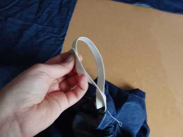 Cortar el elástico con dos pulgadas de longitud permitidas superposición el elástico y coser juntos.