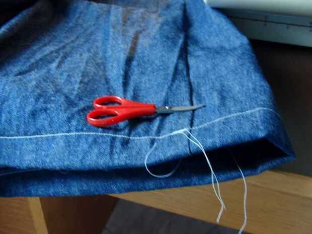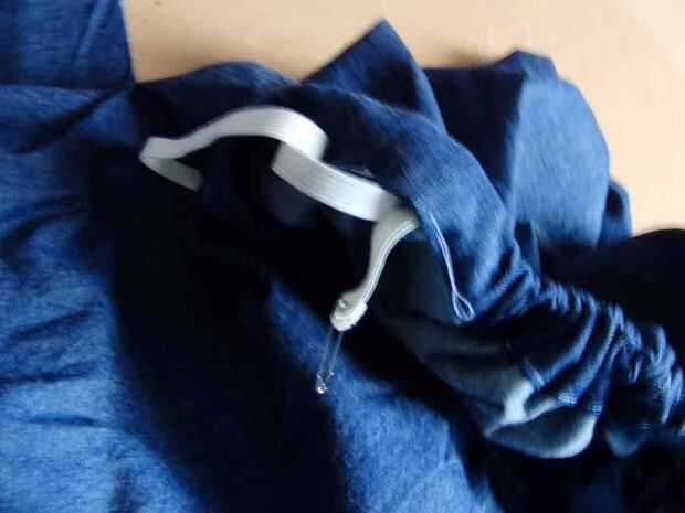 Unbunch los cortos un poco cuando termine y remeter los bordes cosidos de elástico en el canal. Antes de mostrar sus nuevos cortos, asegúrese de cortar el todos los extremos del hilo de las costuras para darles un aspecto más pulido.