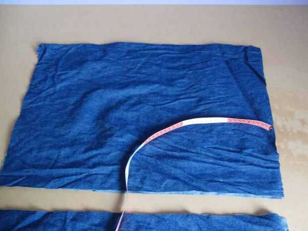 Método B: Vuelva un par de pantalones o pantalones cortos que le caben bien. Coloque la prenda terminada en la parte superior del rectángulo sólo cortar y utilizar como guía para recortar la forma de la curva para la costura de crouch.