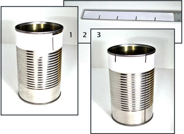 Corte una tira de papel para que sea posible alrededor de la lata exactamente una vez.