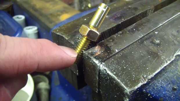 3 - Triturar las roscas del perno 1/2" del extremo.