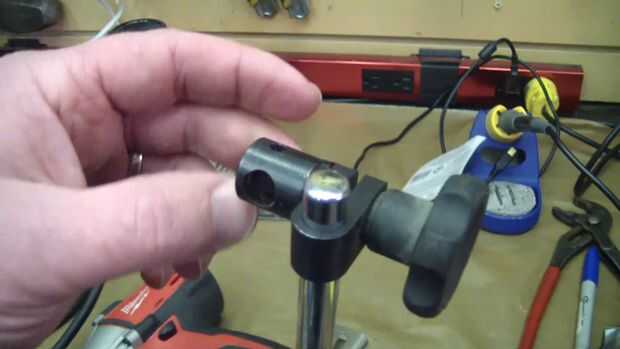 5-el perno de la cinta hasta que es el diámetro correcto para caber cómodamente en la abrazadera de la base magnética ajustable.