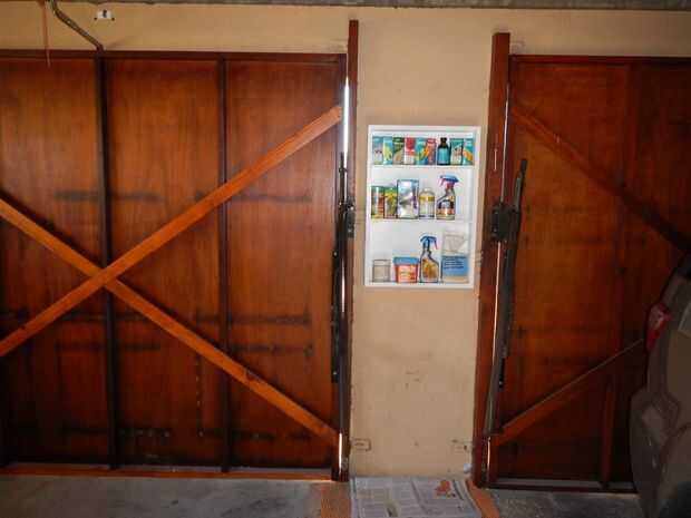 - Es un estante en el garaje. Para productos químicos de jardinería. No la pinte. Si no te gusta la pintura.