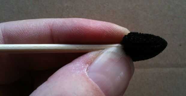 --Cortar aproximadamente una longitud de 25mm (1 pulgada) de espuma conductora, lo suficientemente amplia como para cubrir la madera generosamente a cada lado. Tijeras son más seguros que los cuchillos de artesanos. Se pretende simular una almohadilla dedos en tamaño y forma. Mantener todos los dedos!
