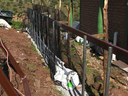 Atar una correa de C o bondbeam adecuado material para la línea exterior de los puestos [la primera vez lo hicimos, pusimos la viga de enlace en el interior de los postes y aprendió que el exterior habría sido mejor]. Atar en cada puesto. También puede utilizar un tornillo para chapa de metal en cada post para mantener todo en su lugar. Debe ser justo por encima de la parte superior de los postes. Asegúrese de que esté nivelada.