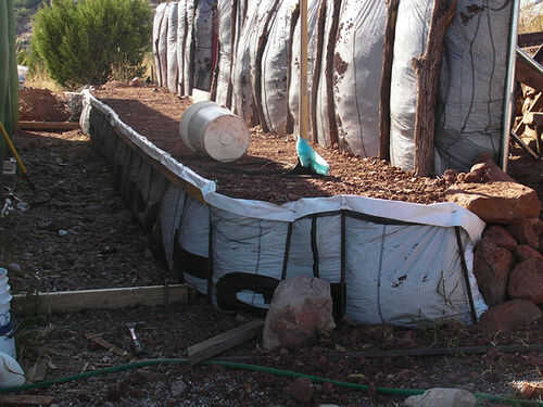 Si desea evitar la necesidad de contrafuertes, puede hacer la pared con curvas, que es mucho más fuerte que un muro recto. También se puede hacer la pared más corta. Para hacer esto, usted debe construir en una colina. Comience con un corto muro en el suelo, unos pies alto y espalda se llenan de suciedad. Luego comienzas otra pared un par de pies hacia atrás y arriba de la colina un poco. Esto le dará una repisa natural dentro de la casa.