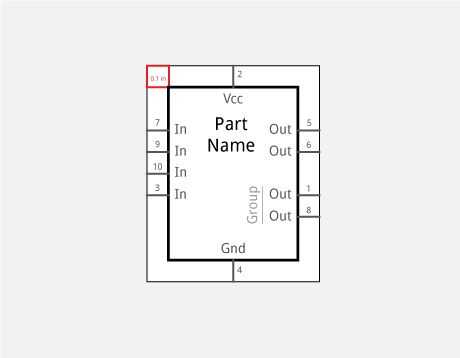 Uno de los otros archivos que se necesita es la vista esquemática. Al crear la vista esquemática es importante recordar el espaciado correcto entre los conductores. El sitio web de Fritzing afirma que conectores deben ser aproximadamente de 0,1 pulgadas (.254 cm) aparte de uno a. Los conectores también deben ser aproximadamente de 0,1 pulgadas de largo. Utilice la opción mover para copiar un solo conector en los puntos múltiples. Asegúrese de marcar todos los conectores y numerarlos correctamente.