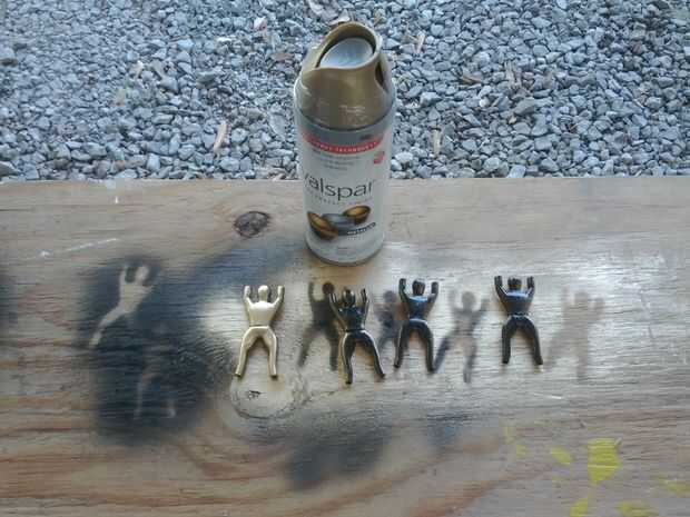 Puede ser bastante difícil de encontrar los mismos, por lo que animamos a encontrar tu propia. Les había lijado por lo que llevaría mejor la pintura en aerosol. Luego basecoated con negro y luego los cubrió con el bronce. Luego usé el mismo método de pincel seco que he utilizado en el paso anterior. Decidimos esperar hasta después de que habíamos sellado para adjuntar a los chicos a los edificios del arbolado, así que no accidentalmente perdemos nada.