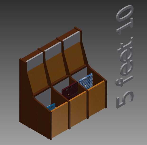 Preliminar a un dibujo en Illustrator para trazar sobre los paneles laterales de las vistas ortogonales fundidas. Autodesk Inventor ayuda con una maqueta y una lista de piezas para Cuántos paneles necesarios.