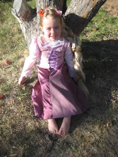 Elaborado un patrón midiendo ambos mi 4 año de edad y fijación tela sobre ella para obtener costuras averiguadas. Hice una falda, una camisa, una blusa y un manto. (Podemos a veces tenemos nieve en Halloween así que hice encima de una capa que igualaría en caso de frío) Después de 5 horas de investigación y alrededor de 30 horas de costura recibí a través de él. El último aspecto a hacer fue el pelo. No quiero hacer la guirnalda de cabello poco como lo que se puede comprar en la tienda de Disney y no quería hacer sólo una gran peluca peluda ella como yo sabía que no mira a la derecha y ella no deja de. Que trenzar el pelo de los pueblos y han estado trabajando con lo que mis propios pedazos de pelo falso para un grupo de recreación medieval, que soy parte de, así que estaba decidida a averiguar una peluca que se termine el traje perfectamente. Tardamos 2 1/2 secciones de falso pelo Kanekalon que puedes comprar en una enorme trenza en Taylor Maid. Tengo color 22 y mezclada en un poco de los 20 más ligero y un poco color marrón 6 como mi hija no es Rubio completamente claro y quería que coincida con su pelo. No conseguí ninguna foto de cómo os adjunto y en tratar de tipo arriba y explicárselo, fue demasiado confusa, pero básicamente el extremo suelto de la trenza enorme tiene atado a dos colas de caballo y había un montón de horquillas. La mejor parte fue sin embargo la glowbys que recibimos de http://www.luminence.com/Glowbys-Glowbys.html, son fibra ópticos clips que hacen que el pelo brillan - un elemento que sabe que es super divertido si has visto la película. Lamentablemente captura de éstos en una foto parecía imposible pero he añadido los mejores que he podido conseguir. Tomó alrededor de 2 horas para hacer el pedazo de cabello y casi 45 minutos para conseguir poner en el. Mi alcanza sólo de pelo hijas sus hombros y ella no estaba demasiado emocionado sobre todos los bobby pins y peso pero cuando todo el mundo estaba diciendo cómo increíble y bella era ella estaba muy feliz y ella no se queja de cuando ella llegó corriendo así que no creo que era realmente demasiado pesado pero cualquier 4 años se siente todavía que durante mucho tiempo provoca quejas de alguna forma. ;)