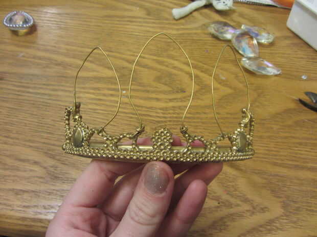 Retire la cinta de pintores o vuelva a colocar los rhinestones a la tiara. Que realmente pop contra el oro.